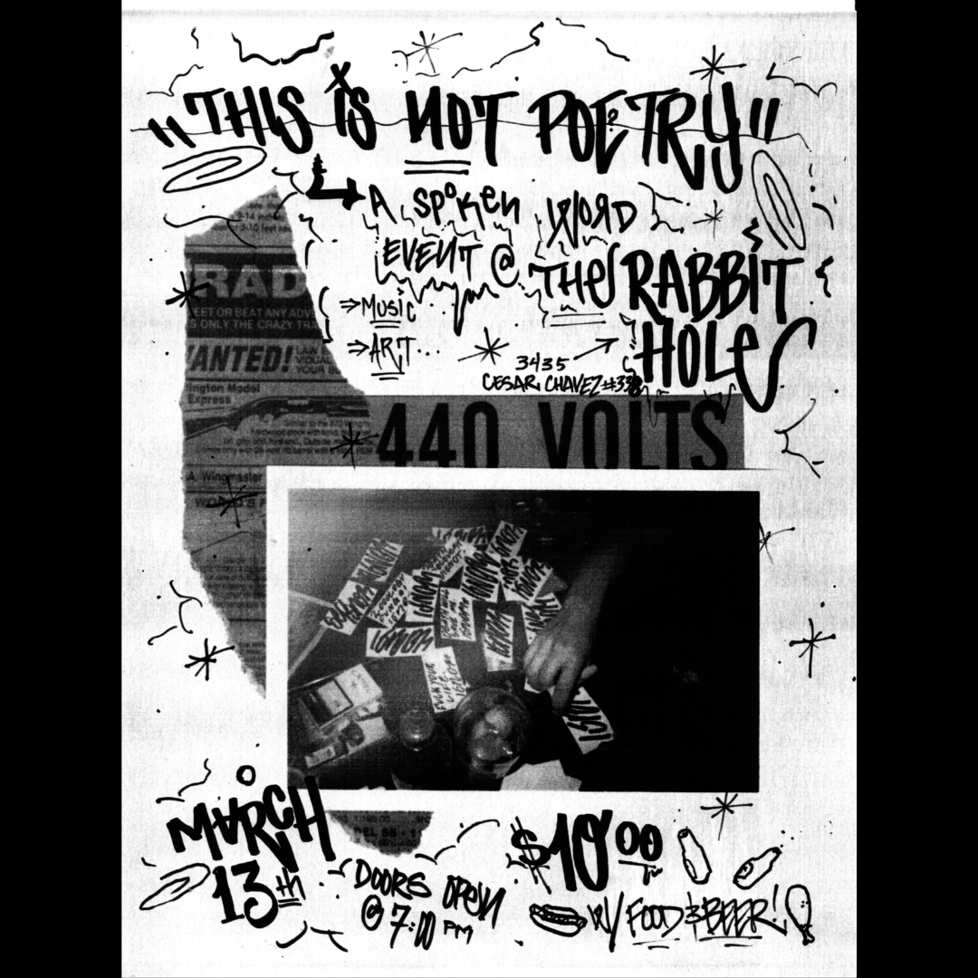 This is Not Poetry was a DIY, underground, spoken word event that collapsed poetic idioms - from 1950’s beat poetry through to contemporary hip hop - it was a happening that championed the counter culture of poetry as a form of resistance.